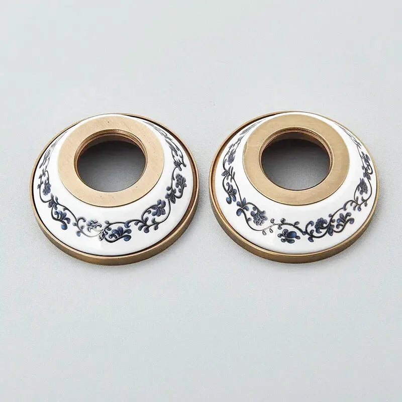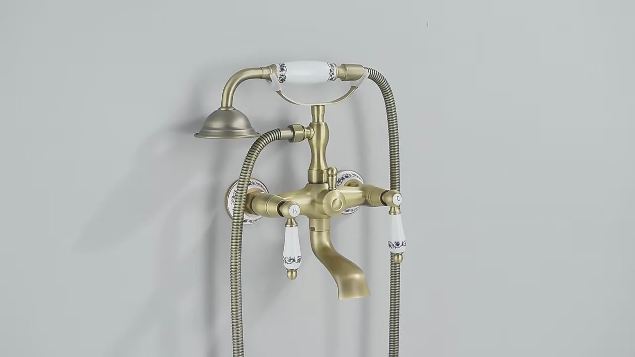 Appréciez le design fleuri, subtil mélange de tradition et de sophistication qui sublime votre salle de bain. Rappelant la fin du XIX et le début du XX siècle avec cet association de laiton porcelaine le tout souligné par de fins motifs floraux. Le tout rappelé sur les commandes et le pommeau